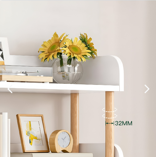 Fabricada con tableros MDF de alta densidad (0.06") y patas de madera de haya maciza (1.08" de diámetro), esta estantería está diseñada para resistir el uso diario y soportar un peso considerable.